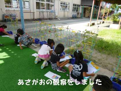 子どもたちは,手に取りながら自分のアサガオを観察し,スケッチしていました。