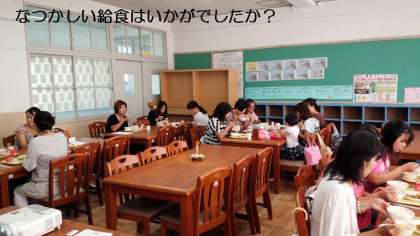 子どもたちが普段食べている給食を保護者の方に食べていただき,給食や食育について,一緒に考えるという会です。