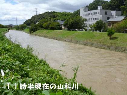 山科川をはじめ,河川が増水しています。大変危険な状態です。