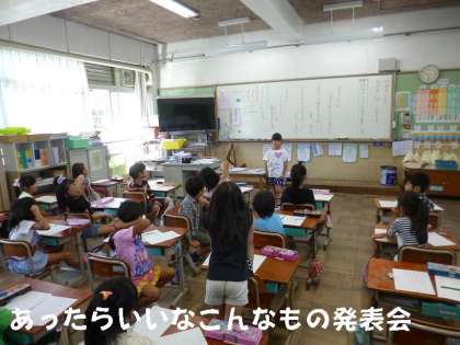 1組では,「3連休の出来事」を,2組では,「あったらいいなこんなもの」を,一人一人前に出て来て発表していました。聞いている子どもたちからも質問が飛び交っていました。