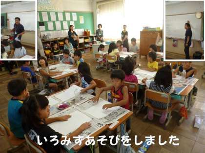 1年生は,生活科 あさがおの花をつかっての「いろみずあそび」