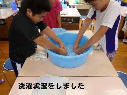 全自動の洗濯機で洗うのでなく,手洗いで洗うことに学習の意味があります。