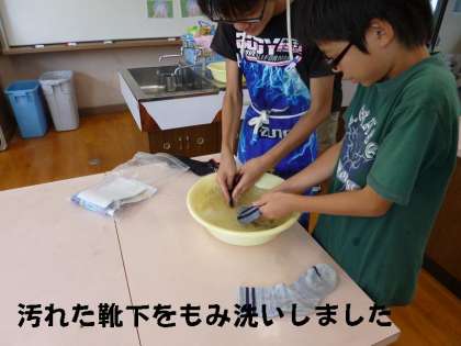 汚れた靴下や野外炊事で使った軍手を手洗いで挑戦しました。