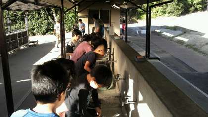 さあ,いよいよ夕食作り,野外炊事開始です。
