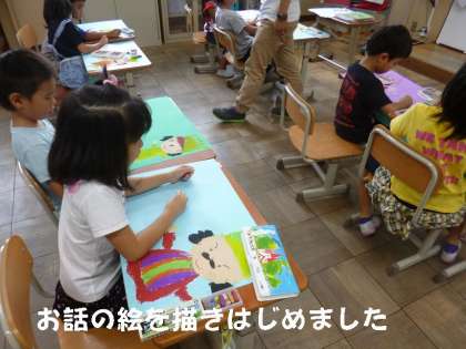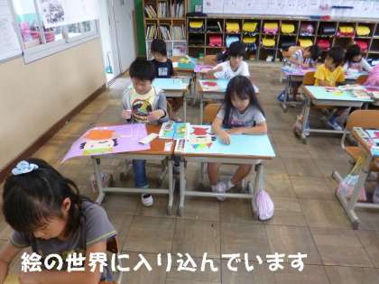 1年生は絵を描くのが大好きです。夏休み明けからもう3枚目の絵に取りかかっています。