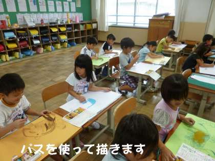 パスで力強くぬっています。お話の絵もきっと力作ができると思います。