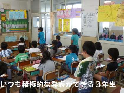 算数の授業のときは,よく発表をする3年生です。なぜこの式がたてられるのか?自分で考え,自分の言葉で発表できる3年生です。