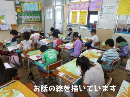 1校時から図工で「お話の絵」を描いています。