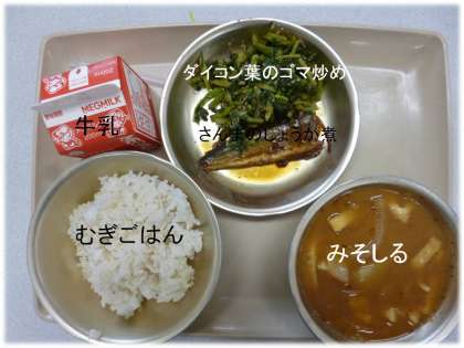「さんまのしょうが煮」「牛乳」