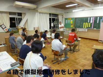 夕方暗くなってから,先生たちが模擬授業研修会をしました。
