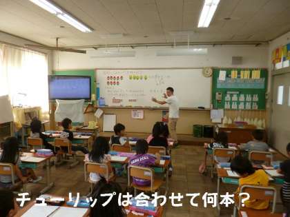 1組は「おにぎり」2組は「チューリップ」を提示して,子どもたちが意欲的に楽しく学習できるように取り組んでいます。