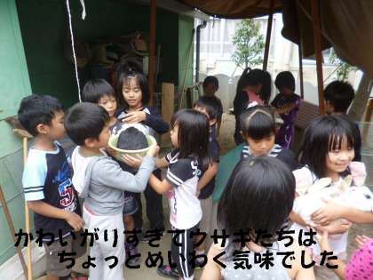 今日は,学校のうさぎ小屋に行って,6羽のうさぎたちとたわむれました。子どもたちは,うさぎにさわったり抱っこしたりで,うきうき,のりのりでしたが,うさぎたちは,迷惑そうに逃げ回っていました。(笑)