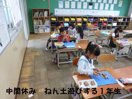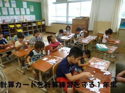 1年生の教室をのぞいてみると,ねん土や計算カードで,みんなかしこく遊んでいました。