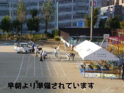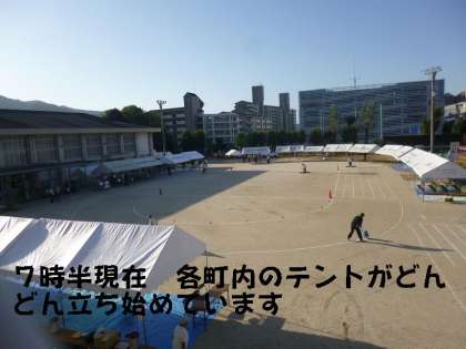 昨日から,そして今日は早朝6時過ぎから,役員さんが準備をされています。各町内のテントもどんどん立ち始めています。