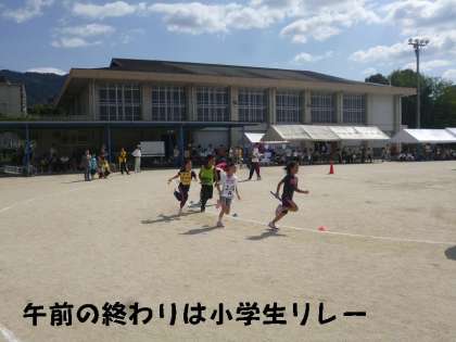 午前の最終種目の小学生リレーで盛り上がり,昼食後12時半から,午後の競技が始まりました。
