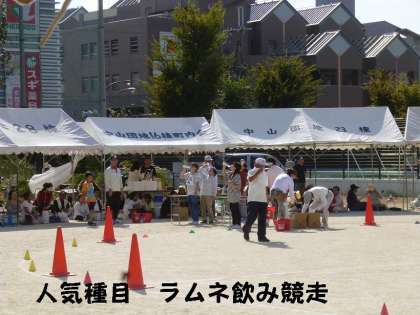 「ラムネ飲み競走」は,人気種目で毎年参加者が多いです。今年も大人子ども関係なくゲップゲップしながらゴールしていました。