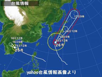 またまた,大型の台風26号が日本列島に接近しています。今のところ,近畿地方への上陸はなさそうですが,大雨や暴風に関する警報,注意報には,十分ご注意ください。