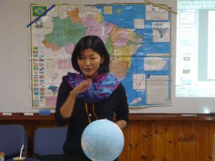 最後にブラジルの言葉、ポルトガル語の挨拶を覚え、さっそく先生に話かけていました。
