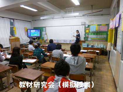 子どもたちが下校したあと,先生たちは本校恒例の教材研究会(模擬授業)を行っています。
