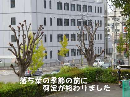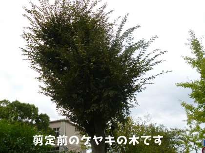 先週の秋休み前に,通用門横のケヤキの木が剪定されたことを紹介しましたが,昨日,残りの木の剪定がすべて終わりました。
