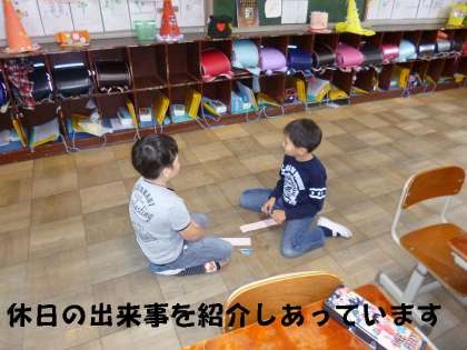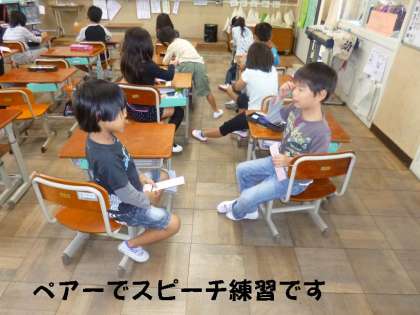 休日にあったことを,相手にわかりやすいように話します。うまく伝えようと意識して,つまってしまうこともありますが,そこは笑顔でカバーしてスピーチしていました。