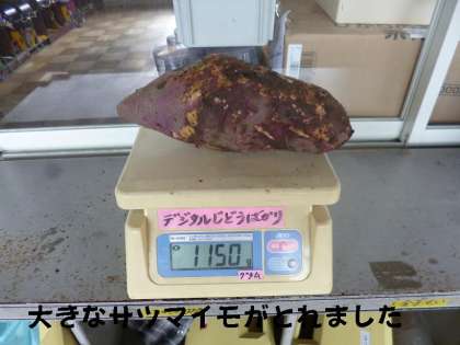なんと予想以上に大きなサツマイモがゴロゴロ,ザクザクと出てきました。1キロ以上あるジャンボサツマイモです。