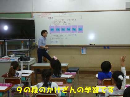 子どもたちは,担任の先生以外に5人も先生が入って授業をみていただいたので,少し緊張気味でしたが,難しい9の段のかけざんの問題に一生懸命取り組んでいました。