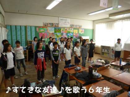 学習発表会で披露する「すてきな友達」という歌を,気持ちを込めて歌っている6年生の姿がありました。