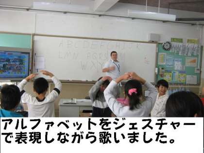 まず,アメリカバージョンの「ABCの歌」を一部のアルファベットに,ジェスチャーをつけながら歌いました。