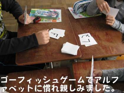 その後,「Go fish(ゴーフィッシュ)ゲーム」でさらにアルファベットに慣れ親しみました。マシュー先生といっしょにとても楽しく活動していました。