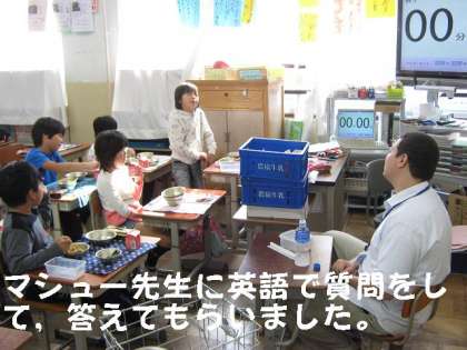 今日は,ALTのマシュー先生の来校日です。マシュー先生が来られるようになってから,初めていっしょに給食を食べました。
