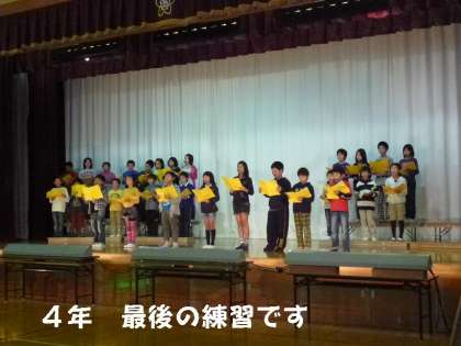 4年生も,3年生の仕上げ練習の残りの時間をもらって,舞台練習で締めくくりました。
