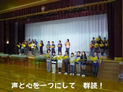 群読は,そんなに派手な演技はありませんが,子どもたちが声と心を一つにして発表できるかがポイントです。