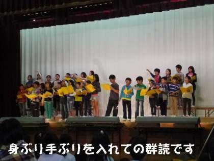 みんなで読むと楽しくなる。みんなで読むと響きあう。4年生は,群読のおもしろさを発表しました。