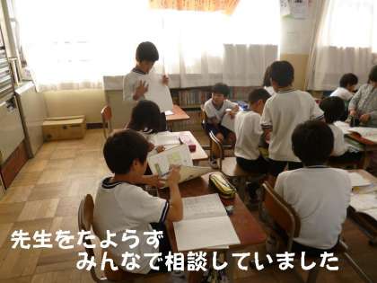 先生に頼ることなく,友だちどうし相談しながら,課題に挑戦していました。