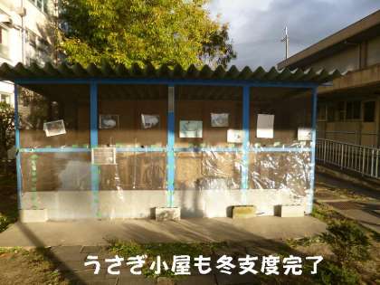 今日,飼育委員会の子どもたちが,うさぎ小屋の冬支度で,ビニールシートを張ってくれました。