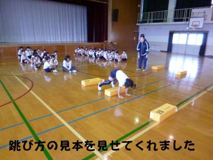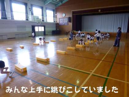 学習発表会で「ねこちゃん体操」を発表した2年生ですので,全員が上手に跳びこしていました。