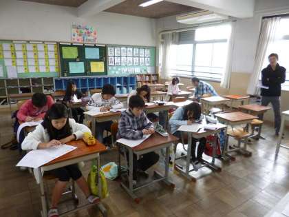 5年生は,クラスごとに複数名の先生と一緒に取り組んでいました。