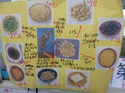 大豆がいろいろな食べ物に変わっていくことを知り,驚き仰天です。もっともっと調べたくなりました。