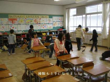 6年生の指導ですっかり掃除が上手になりました。最近では,ほとんど6年生の手を借りなくても自分たちで掃除ができるようになっています。