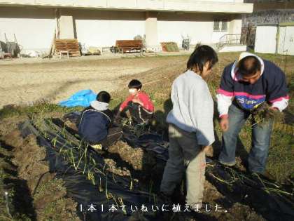 4組のページ 玉ねぎの苗を植えたよ!