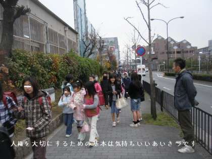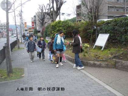 友だちの人権を大切にすることは,自分の人権を大切にすることにつながります。その基本は「あいさつ」です。あいさつをしっかりすることによって,人を気持ちよくします。人権月間の取組の一つとして,今日から「あいさつ運動」がはじまりました。