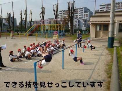 今日は,今,自分ができる技をみんなで見せ合いっこしました。