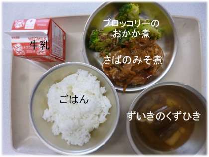 「ごはん」「ずいきのくずひき」「さばのみそ煮」