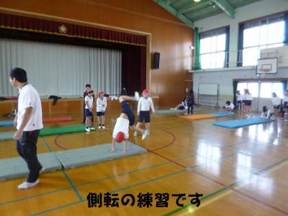 側転,倒立前転・・・等,それぞれ学習図解カードを見ながら,個別練習をしました。