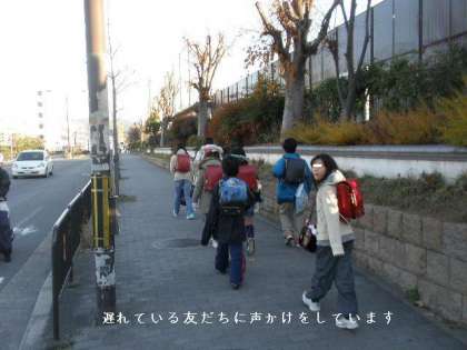 昨日,町別児童集会で,集団登校の乱れの反省がどの地域でもありました。並び方がばらばら,遅れる人がいるなど,いろいろと問題点がでました。その反省をもとに今日は意識して集団登校している班が目立ちました。冬休みまであと2日です。がんばりましょう。