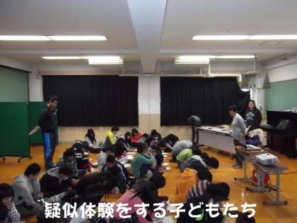 子どもたちは,疑似体験をしながら,障害を理解し,みんなで認め支え合うことの大切さを学びました。
