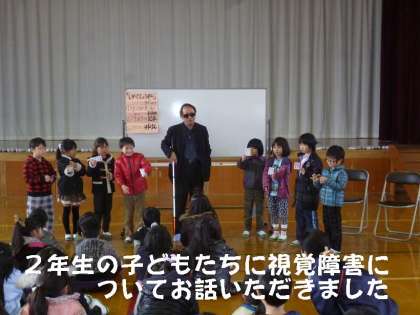 全盲の松永氏は,2年生の子どもたちにも理解できるように,目の見えないことでの困りを話していただきました。