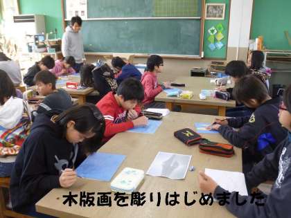 朝から2組が図工室に入って,木版画を彫りはじめていました。