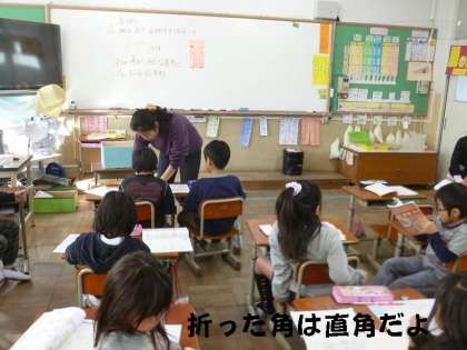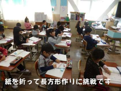 紙を折る作業をすることによって,長方形という形のきまりを見つけていました。